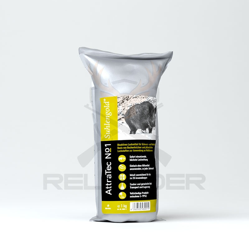 Iako kao čovjek posjedujete samo djelić olfaktornih sposobnosti šumskih životinja, odmah ćete osjetiti oštar miris svježe nanesenog bukovog katrana. Stoga ne čudi da taj miris u početku odbija divlju svinju, a privlači ih tek kada se rasprši. Posebna formula Suhlengolda, s dodatnim atraktantima na biljnoj bazi, neutralizira oštar miris bukovog katrana. Nadalje, ove tvari sinergijski pojačavaju učinak privlačenja. Rezultat: Učinak privlačenja AttraTec No. 1 Suhlengold®-a značajno je povećan u usporedbi s drugim atraktantima i djeluje odmah.