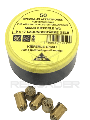 Specijalne patrone kalibar 9 x 17, žuti, pogodni za samopaljive zamke za voluharice, model W2.